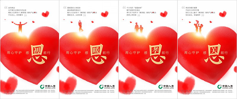 中国人寿保险股份有限公司(以下简称“中国人寿”)开展“用心守护,感恩前行”线上营销主题活动,特别推出“精彩人生男性卡(尊享版)保险产品组合、魅力人生女性卡(尊享版)保险产品组合、孝行天下老年卡保险产品组合、快乐人生儿童卡(尊享版)保险产品组合”(以下简称“男女老少健康包”),用心守护每一个家庭,与大家一起感恩前行。